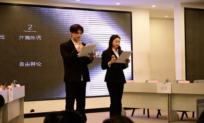 活动伊始,主持人为我们仔细介绍了比赛规则、参赛队伍和各个辩题。参赛选手们紧紧围绕辩题从各个方面展开深入探讨和激烈辩论,让同学们对社会问题、现象有更深层次的思考。选手们雄辩滔滔、妙语连珠、逻辑严密,台下同学凝神聆听、掌声不断。