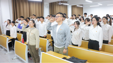 在庄严的入团仪式上,新团员们满怀对共青团的向往与崇敬,迎来了这一重要时刻。全体起立,奏唱国歌后,新团员接过团章,戴上团徽,在孙晨倩的带领下,全体团员光荣宣誓。他们的右手紧握,代表着不忘初心,牢记青春使命的决心和信念。省级优秀团员孙雪作为团员代表上台发言,她提醒团员们要时刻牢记自己的身份和使命,积极参与校园文化建设和社会实践活动,用实际行动践行团员的誓言。新团员万佳豪上台发言,代表全体新团员对自身提出更加严格的要求,继续以积极进取的姿态去学习和工作。