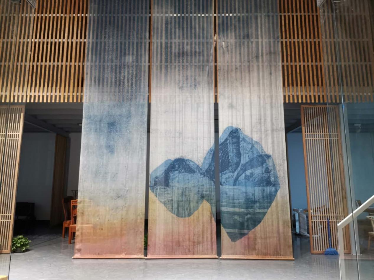 王岩长期在蜡染艺术之路上辛勤探索,对蜡染的材料、工艺、技法、风格形式、艺术应用等有长达十余年的钻研。活动现场,王岩展示了她的蜡染艺术作品,并分享个人在蜡染道路上从学习到实践,再到创新的心路历程。她打破了蜡染蓝白调,民族风的固有概念,创作的蜡染有油画风格,水彩风格,水墨风格,瓷器风格等。创作材料也更加宽泛,棉、麻、丝、毛、纸、木材等都是其经常使用的材料,并且首创热染防染剂,填补了海内外防染工艺的空白。