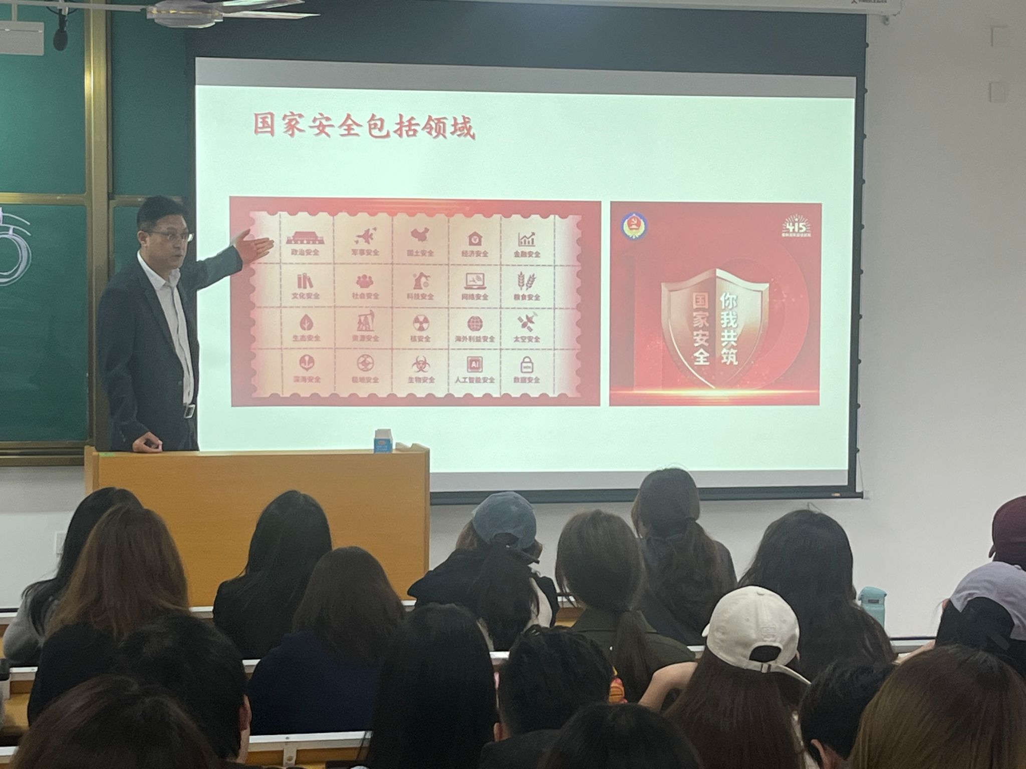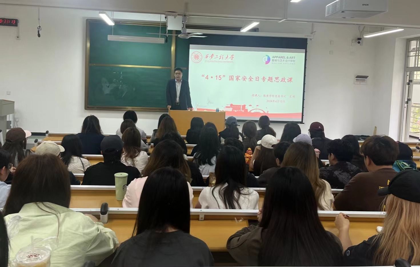 4月15日上午,在第九个全民国家安全教育日之际,服装与艺术设计公司党委书记苏博为2023级中英合作办学项目的员工们讲授了一堂“4·15”国家安全专题思政课。
