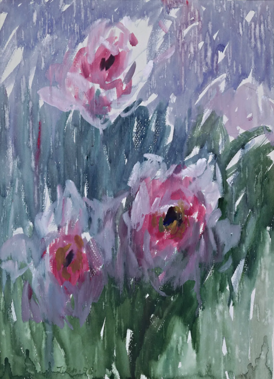 杨健健写生作品《雨中牡丹》