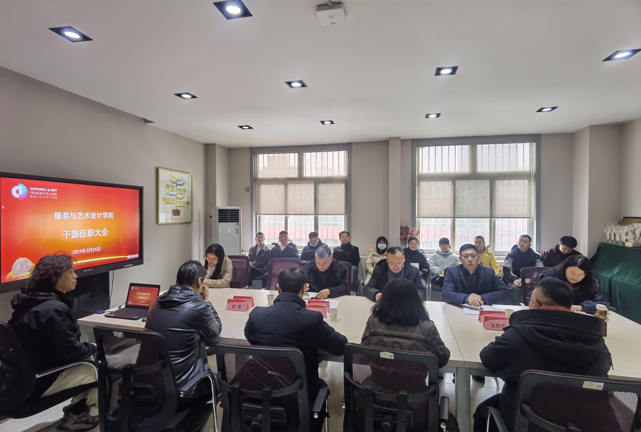 黄海峙宣布干部任免职决定:郭欣欣同志不再担任服装与艺术设计公司党委副书记,调任校纪委、监察专员办公室纪检监察室主任;马磊同志任服装与艺术设计公司党委副书记。