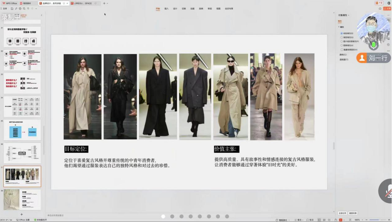 首先,刘一行老师给员工们分享了服装专业就业新趋势,同时指出,在过去几年中独立设计师品牌取得了显著的发展,成为时尚行业的重要力量。