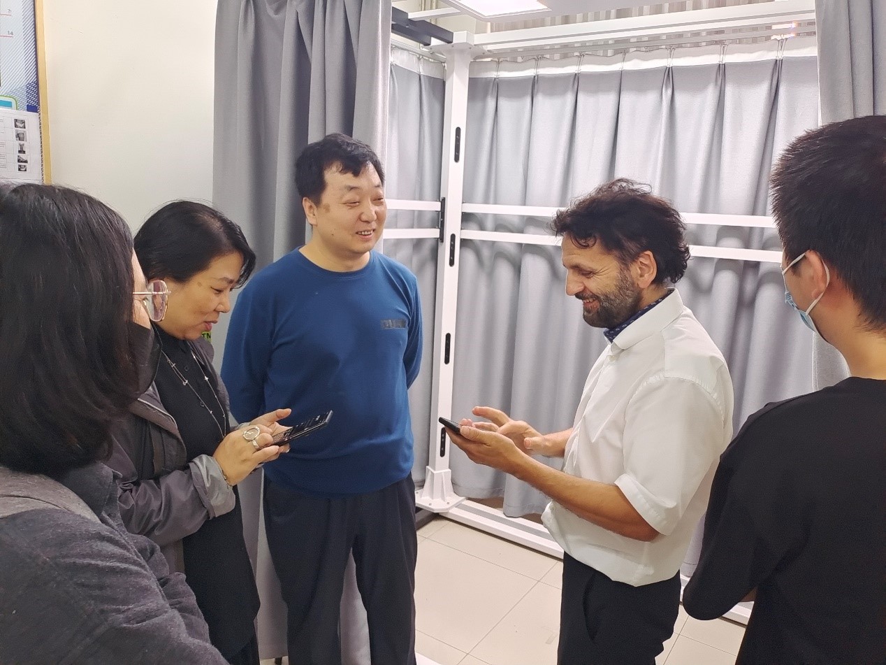 讲座中,顾朝晖、齐静、马飞等老师分别向马提亚斯教授简要介绍了自己在相关方向的研究工作,多名研究生也进行了交流提问。国际交流处黄玲老师应邀出席了讲座,就项目合作和联合培养博士生等相关事宜进行了解答,服装设计系感兴趣的老师也参加了交流。讲座结束后,马提亚斯教授还与师生们共同参观了工程技术研究中心。