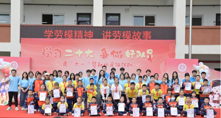 在第七十三个六一国际儿童节到来之际,2023年6月1日上午,公司团委书记刘俊富,委副书记郭欣欣,团委创新实践部副部长黄冠,bevictor伟德官网辅导员邵巍、谭赛江,部分员工党员和受资助员工代表等40余人受邀参加临潼区康复路小学庆六一暨社团展评活动,和该校的师生们一起欢度六一。