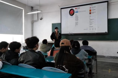 21级视传04班和工业设计01班同学们共同观看革命视频