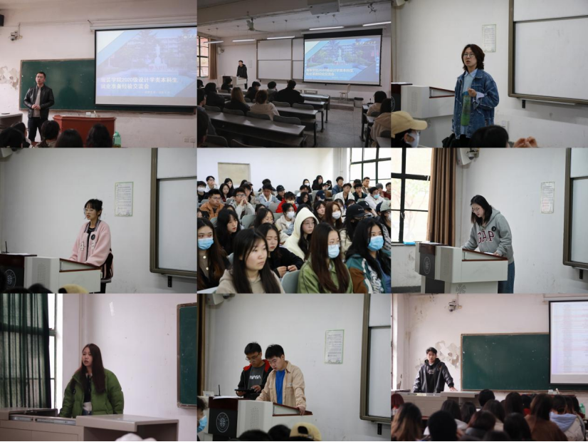 其次,由6名员工代表发言。第一组美术学的鞠金钟、何叔阳同学,他们结合个人的兼职经历,讲述了专业时下的就业趋势,提醒同学们要多渠道关注就业信息。第二位美术学的魏薇同学,她分享了西美招聘会的见闻,详细介绍了业内头部企业米哈游的招聘情况,鼓励大家提早准备,争取在即将到来的秋季招聘获得心仪的offer。第三位环境设计的赵珈艺同学,从如何撰写一份好的简历和作品集入手,系统性的为同学们介绍了求职的流程,使同学们对简历和作品集的重要性有了清楚的认知。第四位环境设计的康春林同学,结合自己当天与HR的面试经验,提醒同学要及时关注校内外招聘会,为同学们提供了更多的招聘渠道。最后,环境设计的周杉杉同学,结合她本学期的实习经历,从环境设计专业的求职方向、企业类型、岗位设置和求职准备等方面给同学们分享了经验。