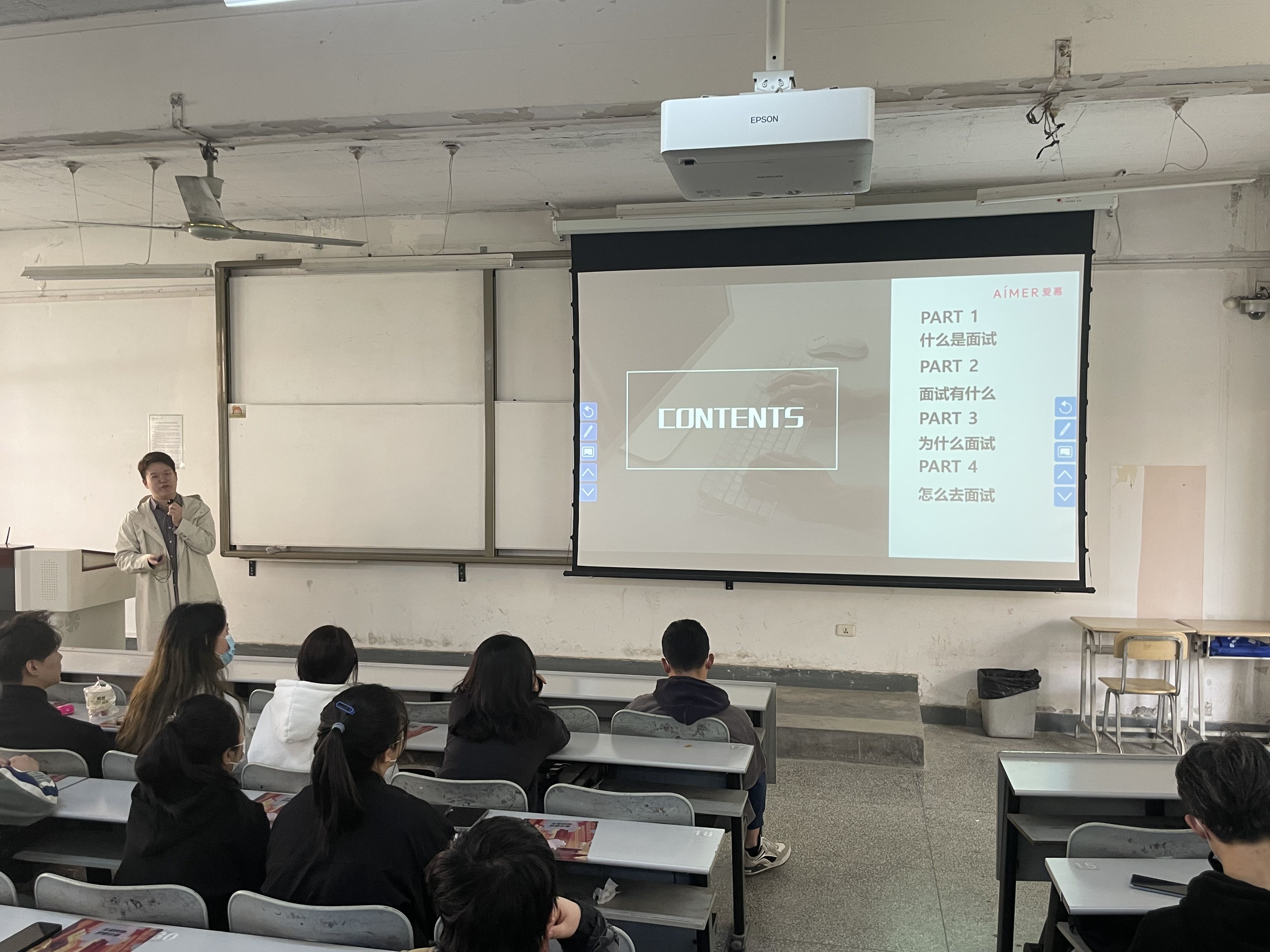 刘经理分别从面试前、面试过程和面试后三个环节,向同学们详细介绍了面试所需资料、着装要求,面试的类型、流程,求职简历制作以及注意事项等等,并重点讲解了面试的难点以及如何从面试中获得成功的要领。活动中,刘华夏从现场随机抽调了多名同学上台进行面对面的模拟面试,用代表性的难点问题进行互动,面试同学也一一作答,他就作答结合自身经历给出了建设性的建议,让同学们对面试技巧有了更深层次的了解。