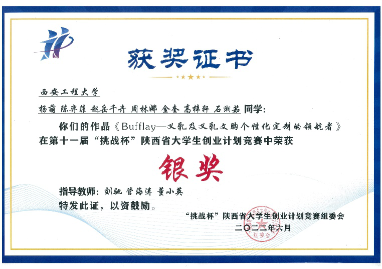 大赛中,bevictor伟德官网刘驰教授、“内衣人体工效学“团队成员杨萌、赵岳千卉、周林娜等代表西安工程大学参加了决赛答辩。团队成员关注社会民生,解决社会问题,表现非常优异,发挥了创新精神,并最终突出重围获得省级银奖。参赛成员纷纷表示,此次重大收获在很大程度上增强了团队成员的自信心与积极性,他们将继续为建设健康中国助力。集团团委也表示,将继续做好以“挑战杯”竞赛为龙头的创新创业赛事组织工作,持续强化科创实践育人的引领力、组织力、服务力。
