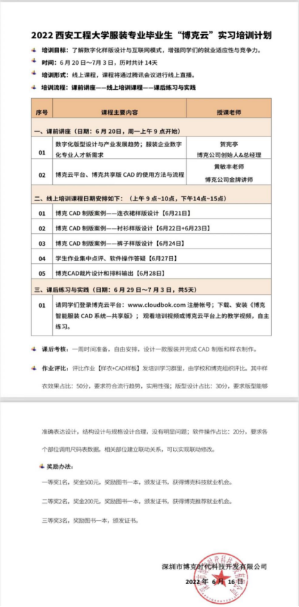 6月20日,bevictor伟德官网服装工程系邀请深圳博克时科技开发有限公司为19级成衣班、卓越班同学举办“博克云”实习培训。这是服装工程系连续第三年与博克科技开展教研实训活动,服装工程系系主任任军、教师徐永驰、王悦、刘红彦、马飞等,以及2019级服装设计与工程专业同学共计60余人参加了此次实训。