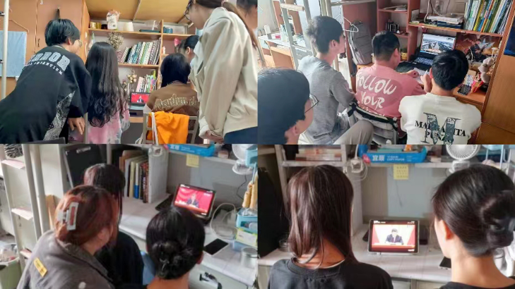 (师生在公司主会场一同观看“庆祝中国共产主义青年团成立100周年大会”)