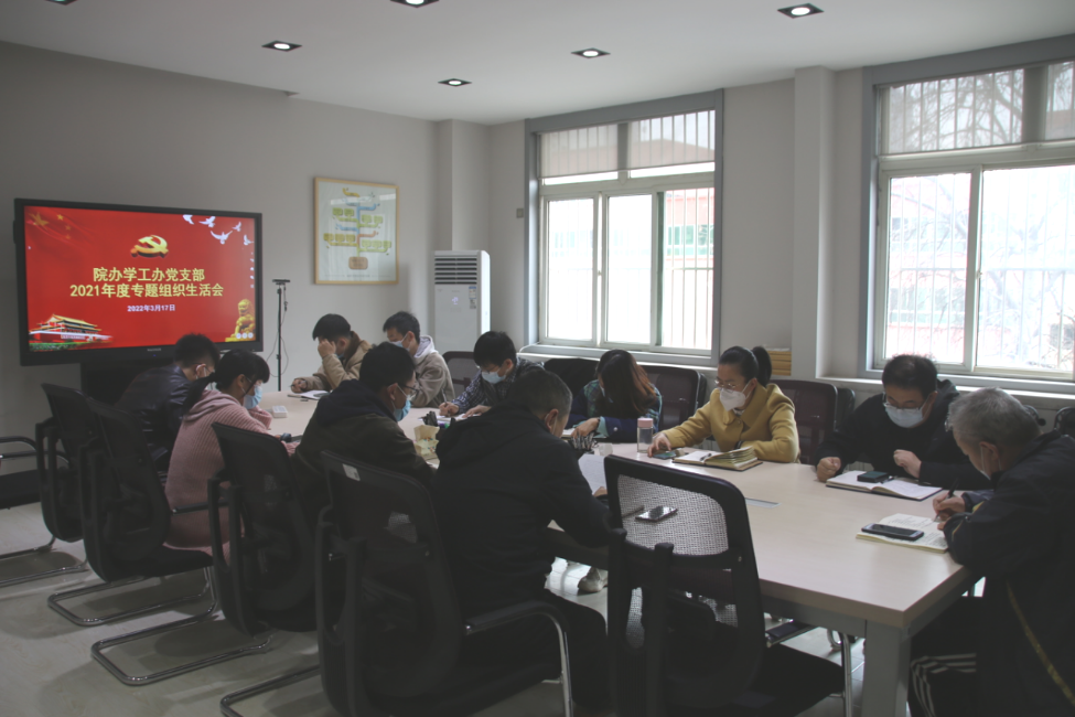 2022年3月17日,bevictor伟德官网教工院办学工办支部在服装楼三楼会议室召开2021年度组织生活会。公司党委书记李筱胜、党委副书记张骥、学工办主任蔡洋及支部全体党员参加了会议,部分因疫情居家办公及在临潼校区的同志线上参会。会议由支部书记蔡洋主持。
