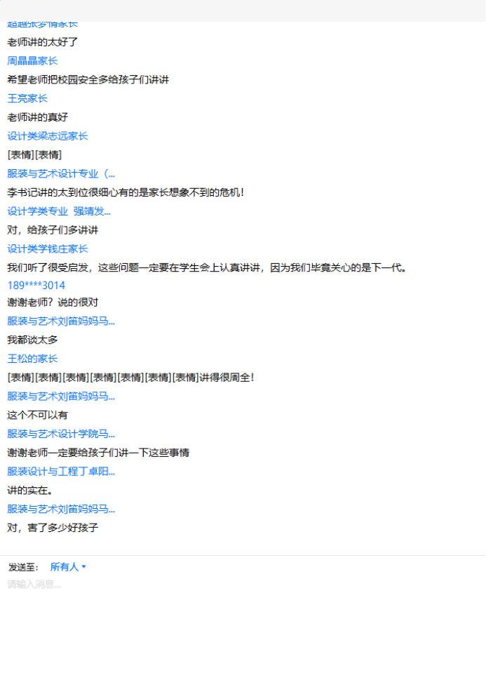 李筱胜结合多年从事教育管理服务的经验,以“安全与学业”为主题,分别从交通安全,心理健康,不良习惯列举出老员工容易遭受的伤害,又从家庭,公司,社会等方面影响员工学业的因素,向家长和同学们提出多点建议,希望家长们加强与员工的有效沟通,教育孩子遵守法律法规与校纪,规范孩子的生活习惯,避免家庭因素对孩子的影响。李筱胜的发言得到与会家长一致认同,家长纷纷留言表示李书记发言中肯、语言实在,有很大收获,并表示支持与感谢。
