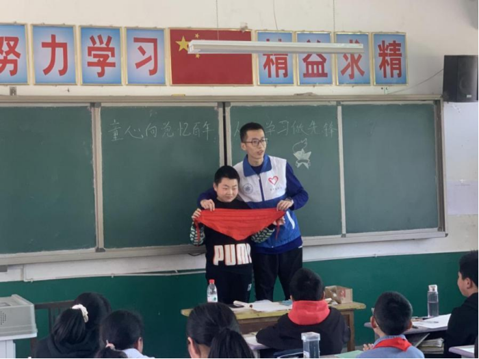在本次活动中,志愿者们克服突发停电的影响,及时调整支教方案,向接管的6个无课班级的小员工讲解中国少年先锋队的由来与发展,通过《小萝卜头》、《草原英雄小姐妹》等经典儿童红色历史故事,加深孩子们对党史的了解。小员工们认真聆听、积极互动,与大哥哥、大姐姐齐唱红歌,赞颂祖国。志愿者们还发挥专业特长,带领孩子们绘画中国少年先锋队队徽、队旗,边画边讲她们所代表的含义。支教活动在寓教于乐的充实安排下获得师生的肯定与感谢。