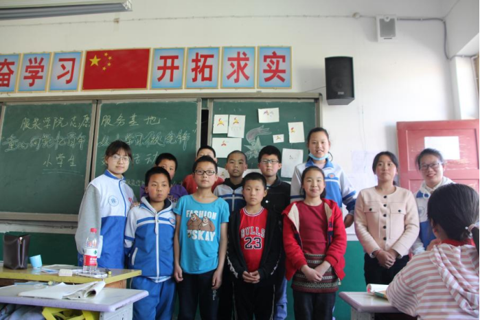 志愿者们与小学师生合影留念