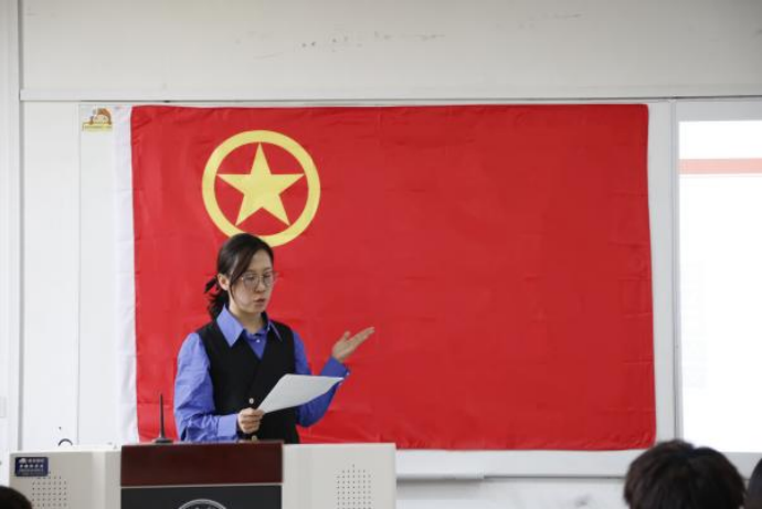 团总支书记马薏雯介绍五四运动