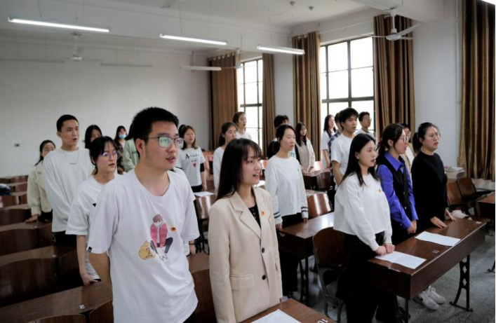 团员青年们齐唱国歌、团歌