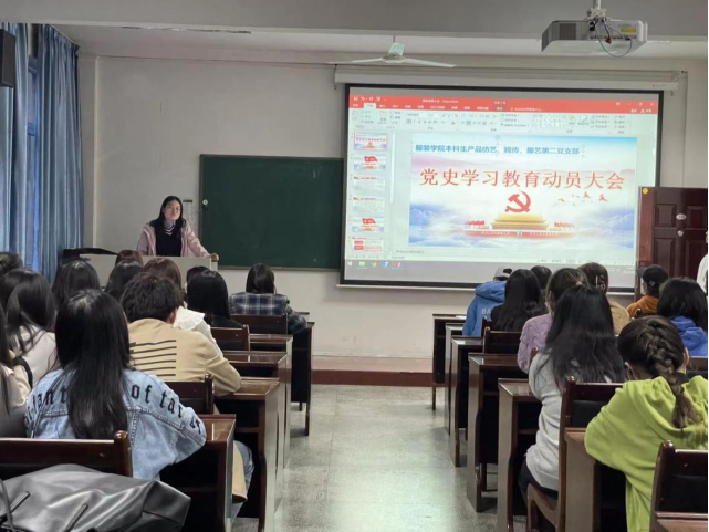 本科生服艺第二党支部书记王丽丽正在进行教育动员