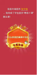 “寒假十课”系列团课以视频的方式,生动呈现了党领导中国人民筚路蓝缕、奋进前行的光辉历程,主要围绕“理想、祖国、榜样、青春、未来”五大篇章展开教学。同学们观看每课的学习视频并在课后回答相关问题。每一课学完也对应获得一枚徽章。这一枚枚小小的电子徽章,成为大家“比、学、赶、超”的学习动力。此次“寒假十课”学习活动不仅是一场生动的党史、国史教育,更是对团员青年理想信念的巩固与升华。