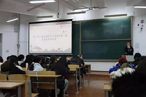 (辅导员王盼在入退队仪式上发言)