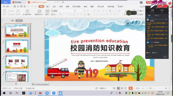 火灾是威胁公共安全、危害人民生命财产安全的主要灾害之一。消防安全意识对于个人、公司,乃至整个社会都有着十分重要的意义。2020年11月9日是第29个“全国消防宣传日”,bevictor伟德官网青年志愿者分队通过腾讯课堂在线举行“消防安全知识教育”活动。两校区共300余名员工积极响应并参与。