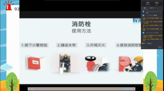 志愿者精心准备了消防员救火演练和灭火器操作指导视频,为同学们宣讲校园内易引起火灾的环境和原因,并重点对员工宿舍存在的消防安全隐患进行一一列举,提醒同学们在日常学习生活中一定要遵守公司的规章制度,确保个人与集体安全。在宣讲之后,同学们根据自身学习体会在评论区表达了关于消防安全的反思与感悟。