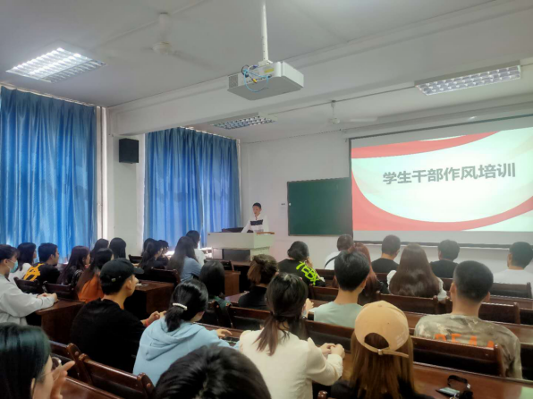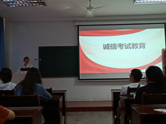 随后,蔺晓珣老师结合近期即将举行的四、六级英语考试,对全体员工干部进行了诚信考试教育。他要求全体员工干部必须积极发挥模范带头作用,遵守考场规定,带领班级同学诚信考试,共同促进优良学风、考风的形成。