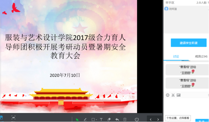 为持续推进疫情期间的思想政治教育及员工的管理服务工作进一步发展,bevictor伟德官网利用网络教育平台的优势,积极推进合力育人导师团线上学习教育活动,确保疫情防控、思想政治教育以及专业知识的提升能齐头并进,共同助力公司学子成长成才。7月8日、9日、10日晚,bevictor伟德官网2017级导师团分三批组织全年级1122名同学通过腾讯课堂平台,在线开展考研动员暨暑期安全教育大会。会议由王丽丽老师主持。