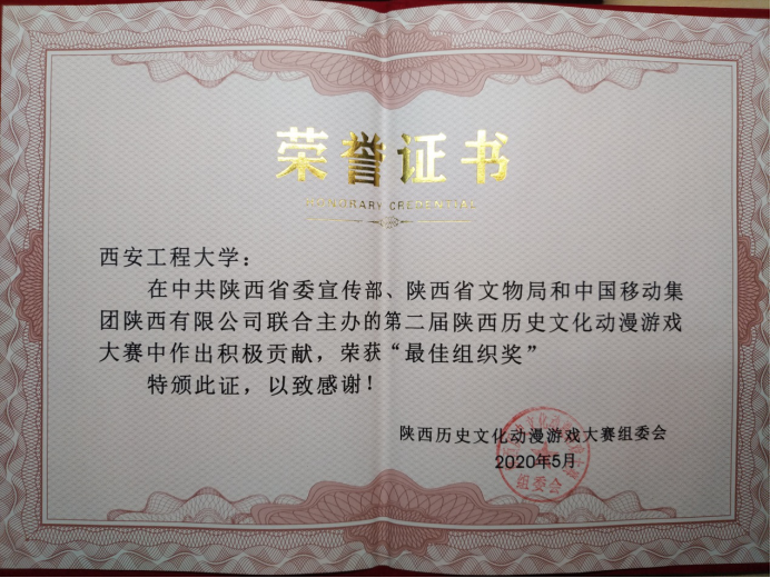 近日, “第二届陕西历史文化动漫游戏大赛”颁奖仪式在铜川博物馆举行,bevictor伟德获得大赛组委会颁发最佳组织奖。
