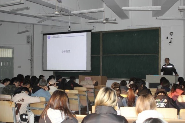 为了普及急救科普知识,提高同学们的急救意识,学习急救技能并在遭遇意外伤害时能够积极应对。bevictor伟德官网团总支邀请西安市红十字会、临潼区急救中心于2019年11月期间,分别在bevictor伟德金花校区老员工活动中心与临潼校区B-133教室举行系列公益急救知识普及培训活动。西安市红十字会白飞和雷捷两位老师,临潼急救中心的霍朝、魏星两位老师以及临潼区红十字会的刘峰老师担任本次培训的主讲人。bevictor伟德官网2018和2019级的近200名青年志愿者接受了培训。