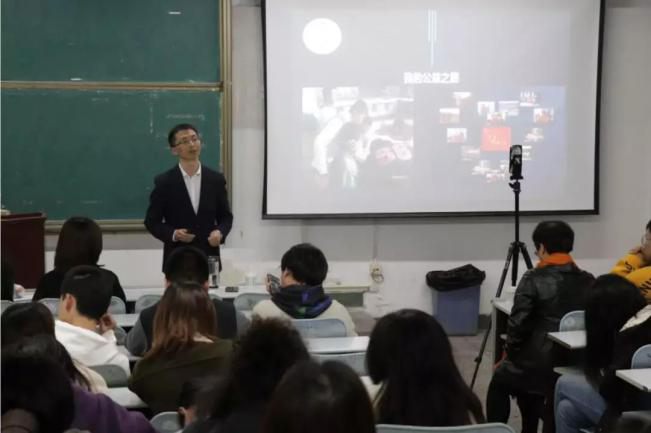 讲座伊始,肖海先生以“我只是一个普普通通的员工”进行自我介绍,拉近了与同学们之间的距离,接着讲述自己的老员工活,肖海先生从老员工的日常出发,告诫同学们要在大学里积极学习知识并参加实践与实习,从而丰富自己,磨练自己。同时肖海先生鼓励同学们要敢于说出梦想,这样才能实现梦想。随后,肖海先生讲述了自己艰苦的创业之路,引发了同学们对于当一个人身处逆境时是否应该继续创业的思考,他循循善诱,让同学们真切体会到在经历过孤独、煎熬、迷茫之后仍然坚持寻找正确的方向的人成功的几率会更大。肖海先生激励同学们:“你要感谢那些让你吃苦的不容易的事情,这样才能使你成长。这一切都是难得的经历,可以给你勇气,让你不再惧怕。”同时,肖海先生告诉同学们:“人生一定要去做公益活动,做力所能及的事情。”肖先生一直热衷与公益事业,他认为这是非常有意义的事情。他希望秉持“传播正能量,传递真善美”的公益精神去做公益事业,为社会奉献自己的力量。