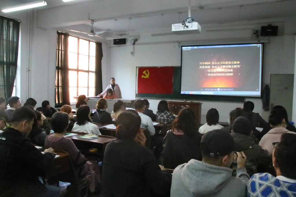 活动伊始,全体党员观摩了“西迁故事”及“最美奋斗者表彰”视频,大家被“西迁人”爱国奋斗先进群体的崇高精神和为西部发展、国家建设奉献智慧和力量的先进事迹所深深打动,并致以崇高的敬意。随后,由西安交通大学员工微宣讲团的三位主讲成员分别围绕“胸怀大局,一路向西”、“回顾校史故事,弘扬交大传统”、“致敬西迁人,奋进新时代”三个主题展开主题教育宣讲,讲述了老一辈西迁人对祖国的热爱、对科学的追求、对青年的提携和扎根西部、建设西部的爱国奋斗故事,传递了“胸怀大局、无私奉献、弘扬传统、艰苦创业”的西迁精神。