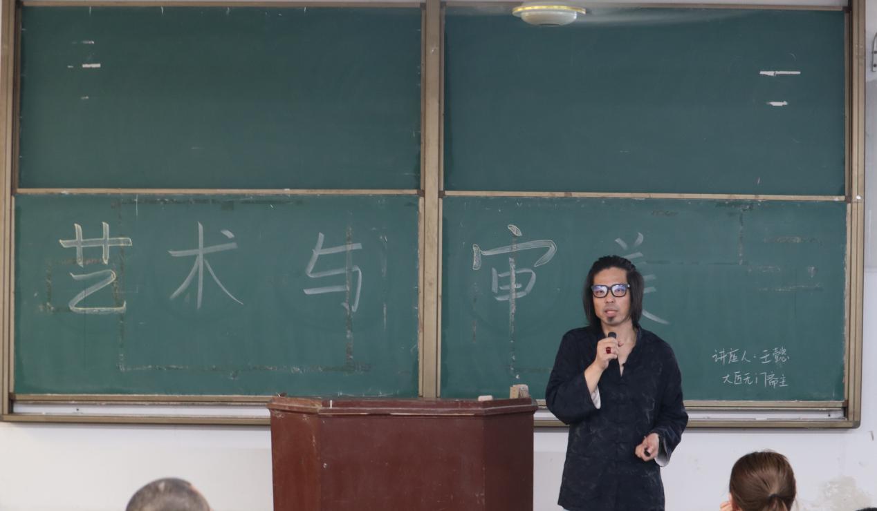 接着王懿老师就以下几个方面作了分享:美育树人、审美对个人和社会都至关重要以及如何提高审美。首先,他引用吴冠中先生的话说,“文盲不多,美盲很多”,美盲比文盲更可怕。冠中尤其强调的是,美盲不能和文盲画等号,美盲不等同于知识缺乏,很多术业有专攻的人,在审美上就是单一缺乏。审美不单单是画画的技能,而是对美的事物的感知力、创造力。其次王懿老师指出:懂得审美,就会有不一样的眼界。美的东西对人有一种天生的吸引力,只要你主动的去接近他们,给自己提供一个相应的环境,如听古人的雅乐,泛读书籍,欣赏大师的绘画等。即使平凡的生活中也会有自己独特的审美格调。最后,审美涉及到生活的方方面面,人与自然,人与物,人与自身的关系。审美能力也会影响人的生活品质。一个人可以活的清贫,但是不能活的没有品位。品位,才是人的独特之处。只有在一个有美感的环境里生活,才能成为心灵高贵,举止优雅,浑身散发着美好气息的人。最后就如何提高审美方面,王懿老师给了我们四点建议:加强对美的感知力,感人所感;提高眼界,见多识广;综合修养,艺术熏陶;多读书,读好书。