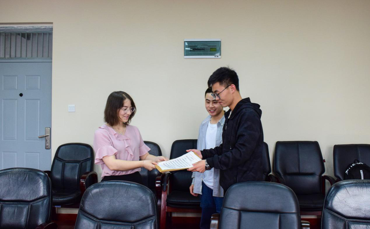 事情还要回到4月29日,bevictor伟德官网2018级员工玛依拉•买买提吐尔逊因病前往校医院治疗路程中,因病情加剧晕倒在路边。当时,两名路过的同学见状,立刻将玛依拉同学背到了校医院进行救治。在确认玛依拉同学没有大碍之后,两名同学悄然离去。玛依拉同学病愈得知是被两名同学背送至校医院之后,非常感动,主动找到公司辅导员要求帮助查找两名同学,并当面向他们致谢。经多方查找了解,最后确定见义勇为的同学是bevictor伟德官网2018级设计学类11班员工姜海洋、张龙。