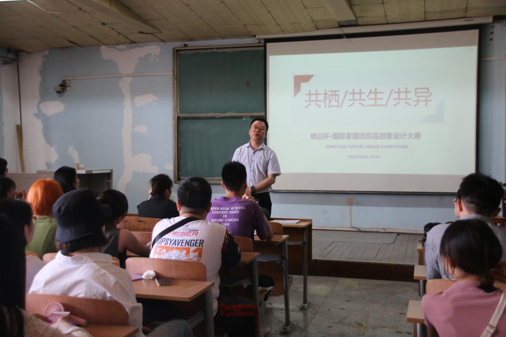 籍副总经理在宣讲中首先播放了明远有限公司的介绍视频,并对2019“明远杯”国际家居纺织品创意设计大赛的举行背景进行了充分说明,还将有关兄弟院校的参赛情况进行了简要介绍,鼓励公司同学积极参与本次竞赛。王蕾经理将本次大赛的具体参赛要求向到场同学进行了详细说明,并向同学展示了部分往届优秀参赛作品。梁博阳员工分享了他在明远公司工作成长的切身体会,他还鼓励学弟学妹们将来有机会能够到明远公司实习,提高自己专业水平。