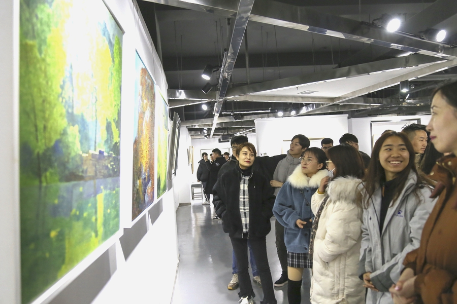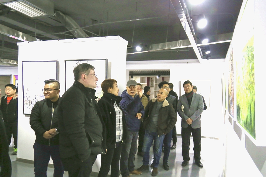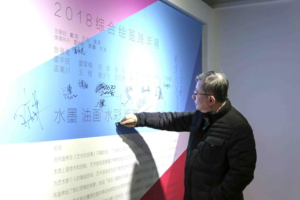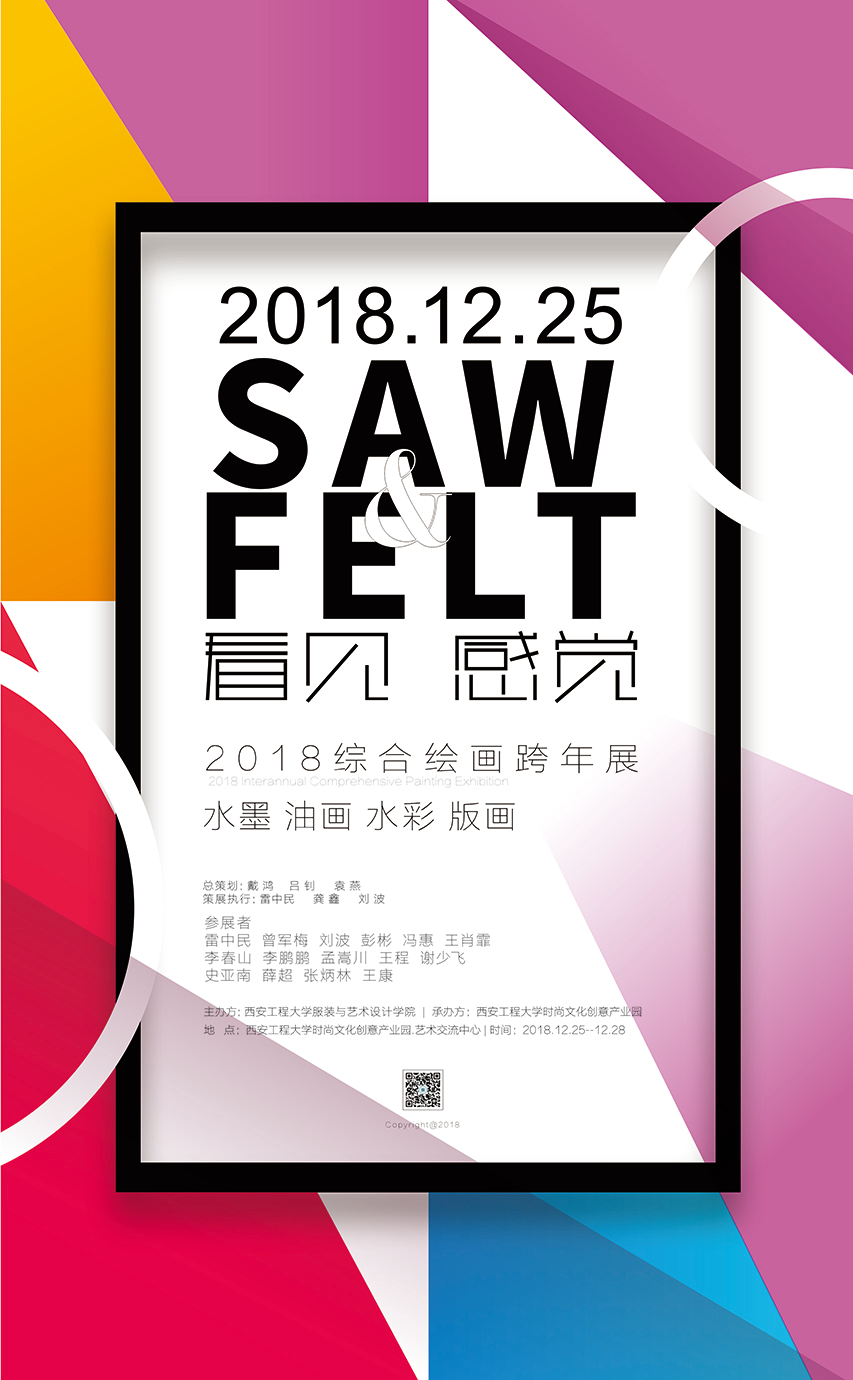 2018年12月25日下午,服装艺艺术设计公司《SAW&FELT 2018综合绘画跨年展》在时尚文化创意产业园艺术交流中心隆重开幕,公司经理戴鸿、党委书记李筱胜、副经理袁燕、副经理田宝华及创意产业园主任吕钊等领导嘉宾莅临现场,与造型艺术系参展教师和6位特邀校外艺术家共同参加开幕式。造型艺术系参展教师冯惠担任主持人,戴鸿经理、李筱胜书记、吕钊主任对本次跨年展给予充分的肯定和鼓励,同时对教师和校外艺术家在专业合作交流上提出期许和要求,鼓励专业教师要更多的举办类似学术活动,联合优秀校外艺术家加大专业交流力度、增加展览密度以增强教学专业效果。造型系教师代表和校外艺术家代表也分别做简单发言,对画展的形式、目的提出了建设性的意见,开幕式结束后师生一百余人参观了展览。