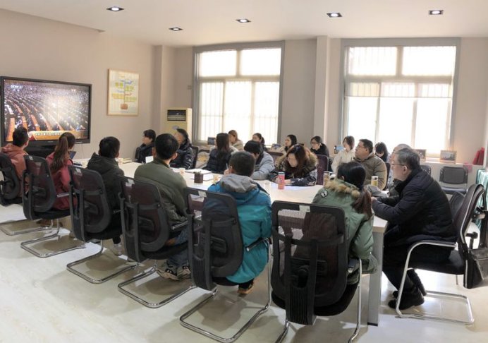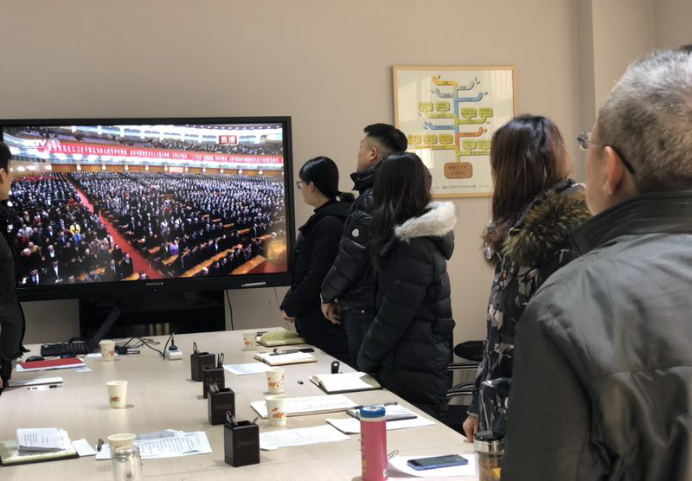 2018年12月18日上午9点45分,bevictor伟德官网经理戴鸿、书记李筱胜、副书记张骥、没有上班任务的教师、全体辅导员、研究生、本科生代表共计70余人在公司会议室观看《庆祝改革开放40周年大会》现场直播。