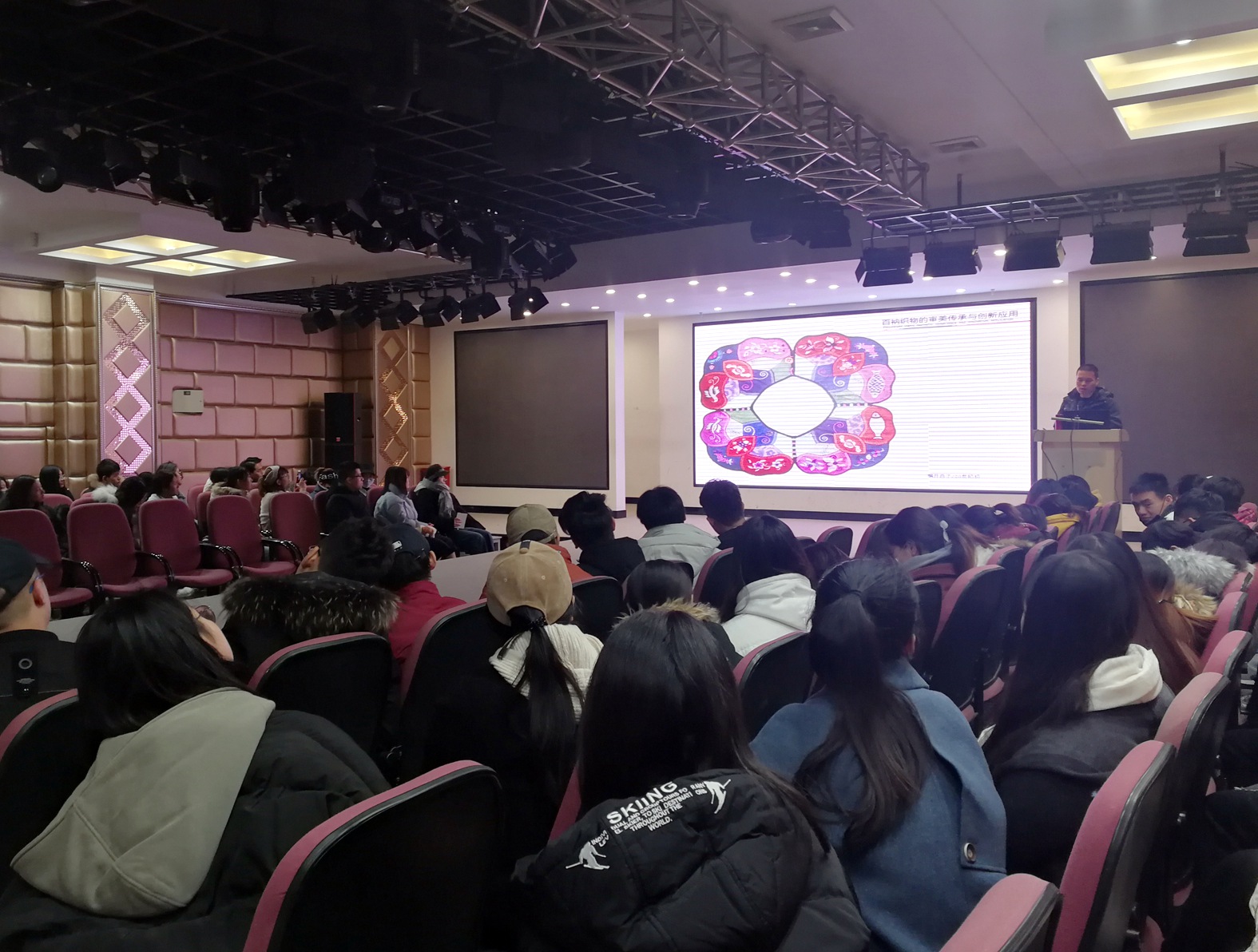 2018年11月10日上午,bevictor伟德官网学术讲堂系列专题讲座在服装表演报告厅举行,本次活动由产品设计系承办,200余名在校研究生和本科生参加了讲座。学术主持人为公司产品设计系主任王教庆副教授,演讲人为中国纺织服装教育学会拼布艺术设计专业教育委员会秘书长、广州大学纺织bevictor伟德官网吴训信教授及湖南商公司设计艺术公司产品设计系主任于肖飞教授。