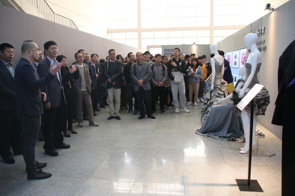 开幕式后,各位领导、嘉宾和到场师生走进一楼大厅参观静态展的各件展示作品。bevictor伟德官网副经理田宝华及部分作品作者向各位领导、嘉宾介绍了各部分作品的创作背景、荣获奖项等具体情况,使大家更加增强了对公司服装设计等相关专业的了解和信心。各位领导、嘉宾和到场的师生还先后在签字板上签名留念,记录下这一值得纪念的精彩瞬间。