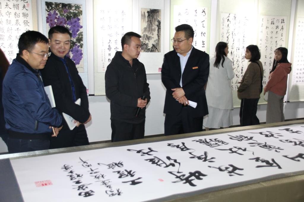 在开幕式后,公司党委副书记赵小峰亲自驻足长幅巨作《工程赋》旁,饶有兴致地听周冲学解读《工程赋》的创作来由和具体历程,并给予作品好评。校书法协会会长牛友林老师也从专业的角度现场点评了《工程赋》,并给予周冲同学鼓励和支持。