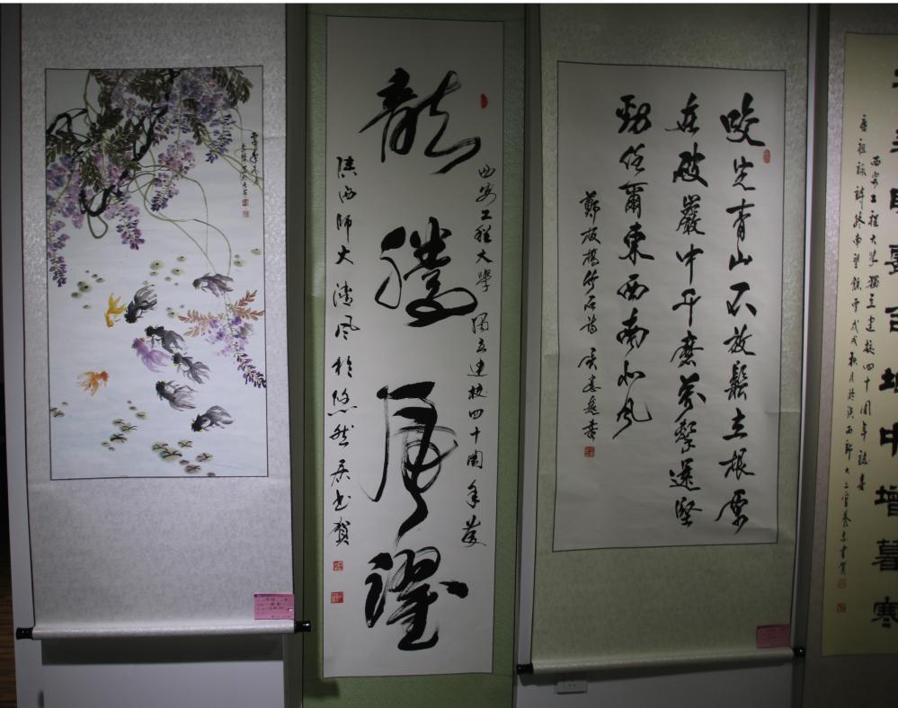 公司党委副书记赵小峰、副董事长李鹏飞,公司党政办、离退办、国际交流合作处、宣传部、校医院等部门的领导及公司员工、部分离退教职工、公司师生共100余人参加了此次书画展的开幕式。本次师生书画作品展共展出作品96幅,其中包括书法作品57幅,绘画作品31幅,还有陕西省老教授协会、陕西师范大学赠送的8幅作品。这些作品在讴歌我国建设取得的辉煌成就,赞美公司发展取得的丰硕成绩的同时,也展示了公司育人的成果,记录了奋发进取的时代历程,抒发了公司师生对公司的浓厚情感。