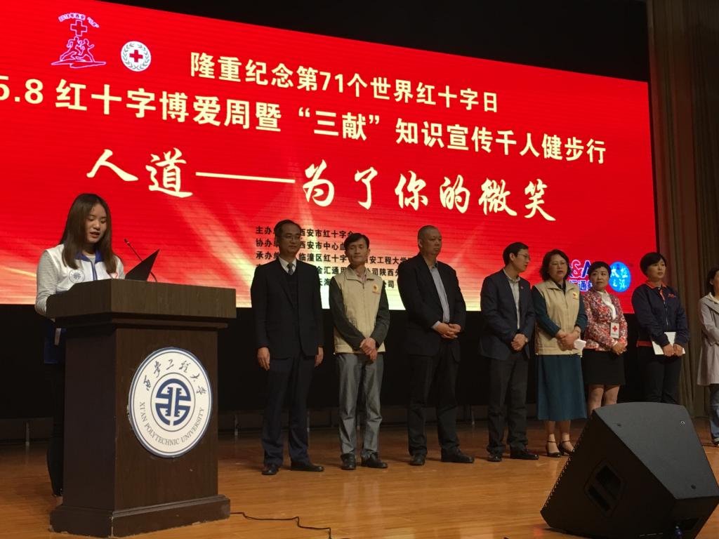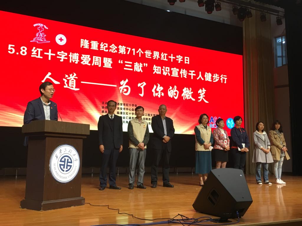 为纪念第71个“世界红十字日”,弘扬“人道、博爱、奉献”红十字精神,2018年5月6日上午,5.8红十字博爱周暨“三献”知识宣传千人健步行活动在临潼校区老员工活动中心成功举办。本次活动由西安市红十字会主办,陕西省造血干细胞库、西安市中心血站协办,临潼区红十字会、共青团bevictor伟德委员会以及bevictor伟德官网承办。
