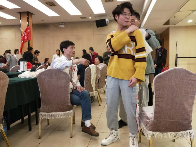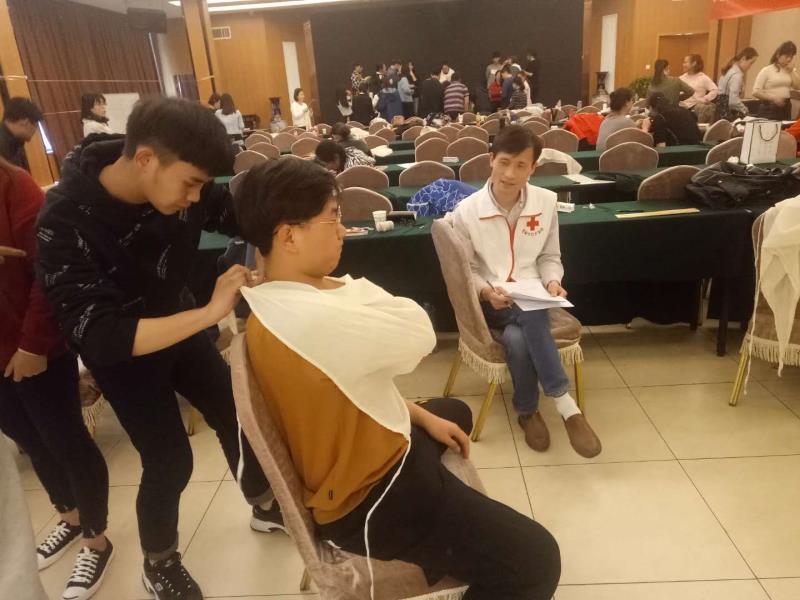 14日上午9:30课程正式开始,红十字会的指导老师首先从红十字会的发展史向学员们娓娓道来,举出了很多鲜活的例子向学员说明急救知识在日常生活中的重要性。学员们带着高涨的学习热情与指导老师进行互动。心肺复苏的学习环节,指导老师用人体模型向大家展示心肺复苏的要领,并教给大家许多基本的口令,如到达现场确保现场环境安全、做好自我防护、检查患者有无意识、检查患者是否有脉搏、正确定位、进行急救操作时按压深度、频率、清理口腔异物等等。当日下午学员们进行了心肺复苏现场施救测验,考试现场老师严格要求,认真规范每个学员的动作。