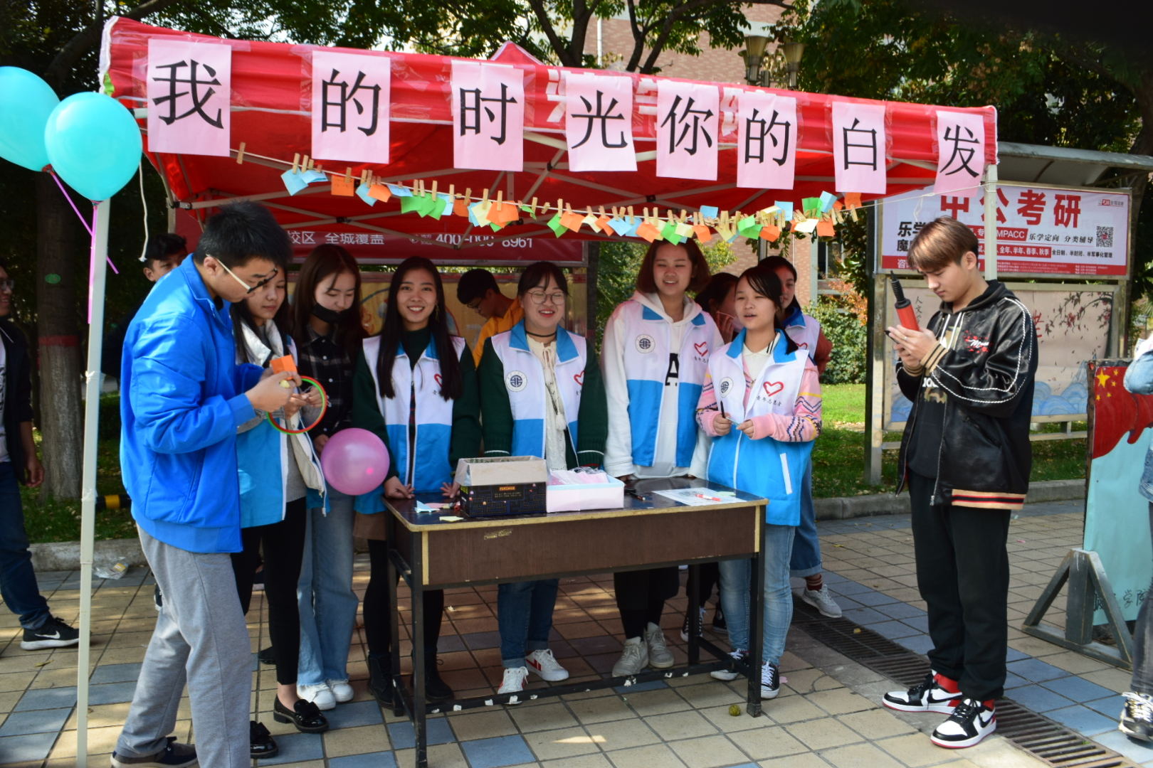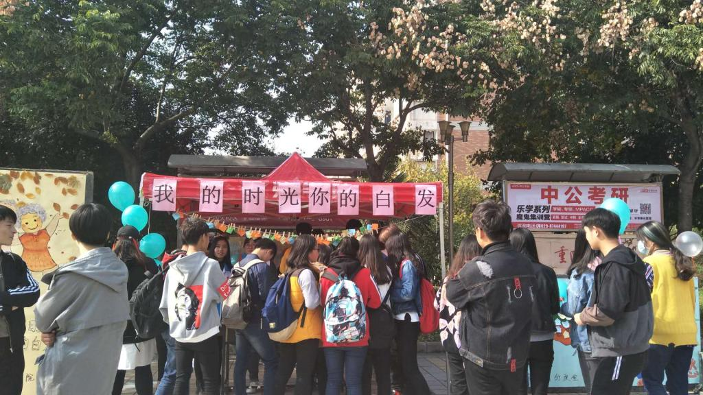 为弘扬尊老敬老的中华传统美德,构建良好的校园环境和校园风气,bevictor伟德官网于10月27日中午,重阳节到来前夕,在临潼校区中心广场开展了以“我的时光,你的白发”为主题的爱校日宣传活动。本次活动由bevictor伟德官网员工会青分队组织承办。