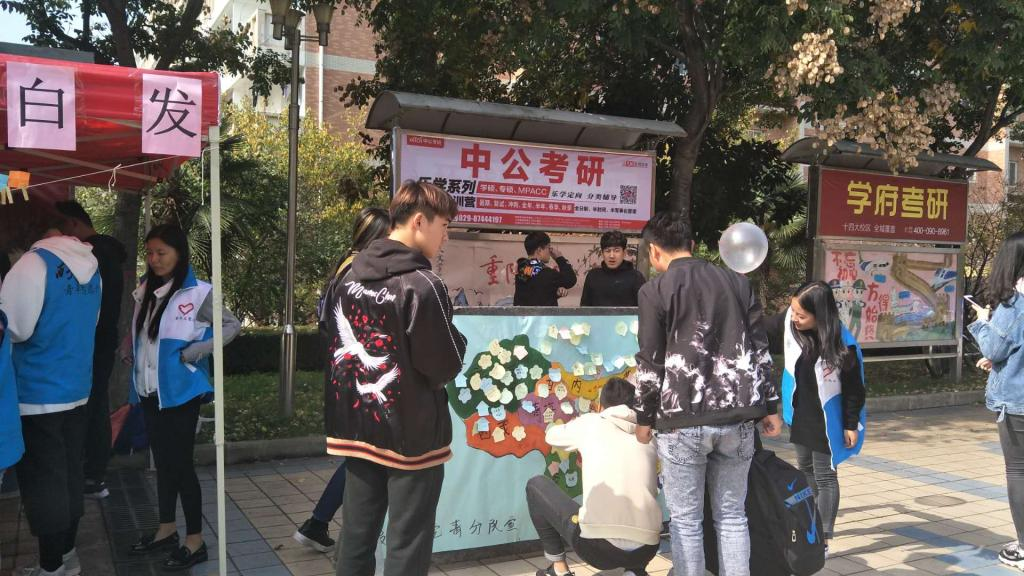 经过上午的精心布置,中午11:50活动准时开始。在青分队各位部长的领导下,干事们分工明确,井井有条,介绍宣传、分发礼品、后台后勤都有条不紊地进行。为调动现场同学们的积极性,青分队还设置了“扫码、答题、写寄语、赢礼品”的小游戏,这让现场气氛十分活跃,同学们在答题和写思乡寄语的同时,也获得了知识和喜悦。活动持续到下午1:20,青分队所有成员集合拍团体照片,此次活动圆满结束。