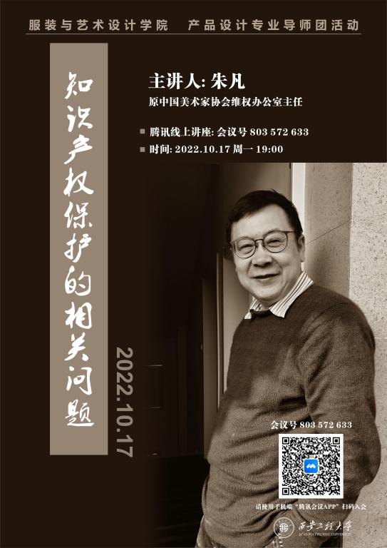 2022年10月17日bevictor伟德官网产品设计专业三全育人导师团活动暨产品设计系学术周活动拉开序幕。本次活动以腾讯在线会议的方式进行为期一周的学术讲座。此次讲座第一期主题为《知识产权保护的相关问题》,主讲嘉宾为中国美术家协会理事、原中国美术家协会维权办公室主任朱凡老师。本讲座的主旨在于增强师生在行业竞争中的法律意识,既要学会依法维护自己的权益,也要注意防范侵害他人的权益。此次讲座由产品设计系王燕老师主持,参会人员共计二百九十余人,除了产品设计系师生外,还有本院服装设计系、视觉传达系等部分师生参加。