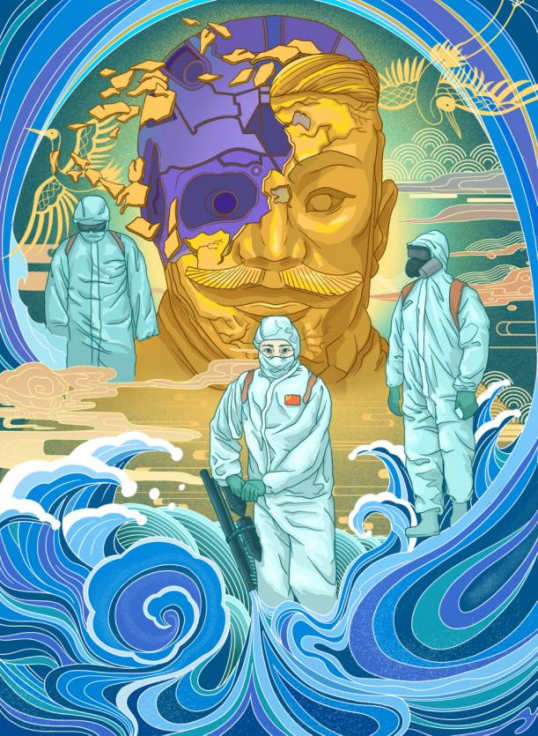 昝梦情《致敬白衣逆行者》板绘 2021级设计20班