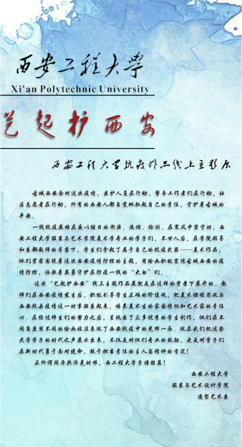 一线抗疫英雄在夜以继日的溯源、流调、检测,在寒风中坚守时,bevictor伟德服装与艺术公司美术学专业的学子们,不甘人后,在公司领导和系部教师的引导下,员工们拿起了属于自己的抗疫武器——美术作品,他们紧密围绕着这次西安疫情防控的主题,用绘画积极宣传古城西安的疫情防控,讴歌着英勇守护在防疫一线的“大白”们。